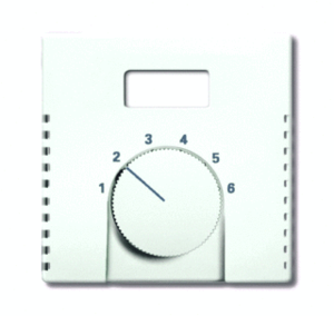 Abb Busch-Jaeger Future, Solo, Axcent, Carat bed.element / centr.pl. schakelmat., kunststof, wit, uitvoering draaiknop, gebruik thermostaat, uitvoering oppervlakte glanzend, opdruk/indicatie diverse symbolen, controlevenster/verlicht, beschermingsgraad (IP) IP20, RAL-nummer 9016, halogeenvrij,