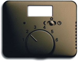 Abb Busch-Jaeger Alpha bed.element / centr.pl. schakelmat., kunststof, brons, uitvoering draaiknop, gebruik thermostaat, uitvoering oppervlakte mat, opdruk/indicatie diverse symbolen, controlevenster/verlicht, beschermingsgraad (IP) IP20, halogeenvrij, kwaliteit thermoplast,