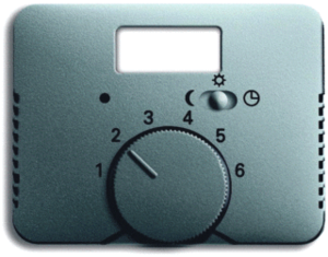 Abb Busch-Jaeger Alpha bed.element / centr.pl. schakelmat., kunststof, titanium, uitvoering draaiknop, gebruik thermostaat, uitvoering oppervlakte mat, opdruk/indicatie diverse symbolen, controlevenster/verlicht, beschermingsgraad (IP) IP20, halogeenvrij, kwaliteit thermoplast,