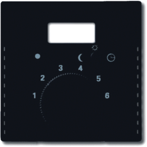 Abb Busch-Jaeger Future, Carat bed.element / centr.pl. schakelmat., kunststof, antraciet, uitvoering draaiknop, gebruik thermostaat, uitvoering oppervlakte glanzend, opdruk/indicatie diverse symbolen, controlevenster/verlicht, beschermingsgraad (IP) IP20, RAL-nummer 7021, halogeenvrij,