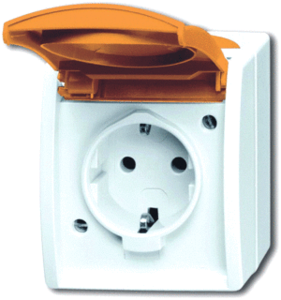 Abb Busch-Jaeger Ocean wandcontactdoos (wcd schakelmat.), wit, uitvoering contactdoos CEE 7/3 (type, aardcontact randaarde clips, 2 actieve contacten (rond), 1 eenheid, 1 modules (bij modulair sys, 1 fasen, aansluitwijze steekklem, met klapdeksel, tekstveld/beschrijvingsvlak, RAL-nummer 2004,