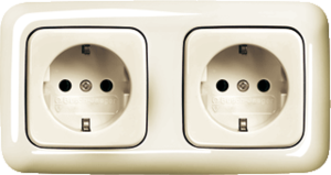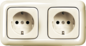 Abb Busch-Jaeger SI wandcontactdoos (wcd schakelmat.), beige, uitvoering contactdoos CEE 7/3 (type, aardcontact randaarde clips, 4 actieve contacten (rond), 2 eenheden, 2 modules (bij modulair sys, 1 fasen, aansluitwijze steekklem, RAL-nummer 1013, geïsoleerde montage