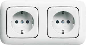 Abb Busch-Jaeger Reflex SI wandcontactdoos (wcd schakelmat.), wit, uitvoering contactdoos CEE 7/3 (type, aardcontact randaarde clips, 4 actieve contacten (rond), 2 eenheden, 2 modules (bij modulair sys, 1 fasen, aansluitwijze steekklem, RAL-nummer 9010, geïsoleerde montage