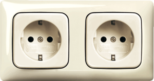Abb Busch-Jaeger SI wandcontactdoos (wcd schakelmat.), beige, uitvoering contactdoos CEE 7/3 (type, aardcontact randaarde clips, 4 actieve contacten (rond), 2 eenheden, 2 modules (bij modulair sys, 1 fasen, aansluitwijze steekklem, RAL-nummer 1013, geïsoleerde montage