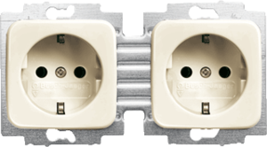 Abb Busch-Jaeger SI wandcontactdoos (wcd schakelmat.), beige, uitvoering contactdoos CEE 7/3 (type, aardcontact randaarde clips, 4 actieve contacten (rond), 2 eenheden, 2 modules (bij modulair sys, 1 fasen, aansluitwijze steekklem, met verhoogde aanraakbeveiliging, RAL-nummer 1013,