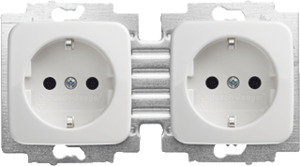 Abb Busch-Jaeger Reflex SI wandcontactdoos (wcd schakelmat.), wit, uitvoering contactdoos CEE 7/3 (type, aardcontact randaarde clips, 4 actieve contacten (rond), 2 eenheden, 2 modules (bij modulair sys, 1 fasen, aansluitwijze steekklem, met verhoogde aanraakbeveiliging, RAL-nummer 9010,