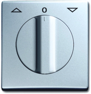 Abb Busch-Jaeger Allw. 44 bed.element / centr.pl. schakelmat., kunststof, aluminium, (bxhxd) 70x70x10mm, uitvoering draaigreep, gebruik jaloezie, uitvoering oppervlakte mat, opdruk/indicatie symbool"pijlen", beschermingsgraad (IP) IP44, RAL-nummer 9006, halogeenvrij, kwaliteit thermoplast,
