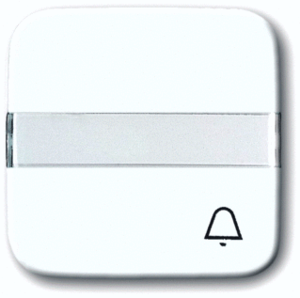 Abb Busch-Jaeger Reflex SI bed.element / centr.pl. schakelmat., kunststof, wit, (bxhxd) 54x54x7mm, uitvoering enkele wip, gebruik schakelaar/drukker, uitvoering oppervlakte glanzend, opdruk/indicatie symbool"bel", controlevenster/verlicht, beschermingsgraad (IP) IP20, RAL-nummer 9010,