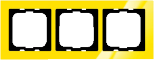 Abb Busch-Jaeger Axcent afdekraam schakelmateriaal, kunststof, geel, (bxhxd) 91x91x11mm, uitvoering oppervlakte glanzend, montagerichting horizontaal en verticaal, 3 eenheden, beschermingsgraad (IP) IP20, 3 eenheden horizontaal, slagvastheid IK03, RAL-nummer 1018, kwaliteit thermoplast,