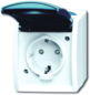 Abb Busch-Jaeger Ocean wandcontactdoos (wcd schakelmat.), blauw, uitvoering contactdoos CEE 7/3 (type, aardcontact randaarde clips, 2 actieve contacten (rond), 1 eenheid, 1 modules (bij modulair sys, 1 fasen, aansluitwijze steekklem, met klapdeksel, met verhoogde aanraakbeveiliging, RAL-nummer 7035,