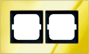 Abb Busch-Jaeger Carat afdekraam schakelmateriaal, metaal, goud, (bxhxd) 107x107x11mm, uitvoering oppervlakte glanzend, montagerichting horizontaal en verticaal, 2 eenheden, beschermingsgraad (IP) IP20, 2 eenheden horizontaal, slagvastheid IK03, kwaliteit overig, 2 modules horizontaal (bij,