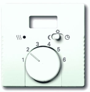 Abb Busch-Jaeger Future bed.element / centr.pl. schakelmat., kunststof, wit, uitvoering draaiknop, gebruik thermostaat, uitvoering oppervlakte mat, opdruk/indicatie diverse symbolen, controlevenster/verlicht, beschermingsgraad (IP) IP20, RAL-nummer 9016, halogeenvrij, kwaliteit thermoplast,
