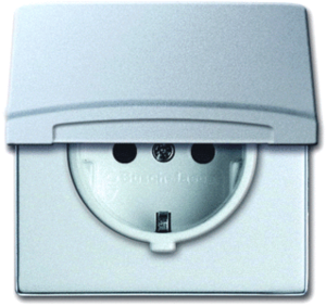 Abb Busch-Jaeger Allw. 44 wandcontactdoos (wcd schakelmat.), aluminium, uitvoering contactdoos CEE 7/3 (type, aardcontact randaarde clips, 2 actieve contacten (rond), 1 eenheid, 1 modules (bij modulair sys, 1 fasen, aansluitwijze steekklem, met klapdeksel, met verhoogde aanraakbeveiliging,