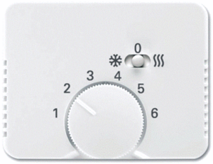 Abb Busch-Jaeger Alpha bed.element / centr.pl. schakelmat., kunststof, wit, uitvoering draaiknop, gebruik thermostaat, uitvoering oppervlakte glanzend, opdruk/indicatie diverse symbolen, beschermingsgraad (IP) IP20, RAL-nummer 9016, met indicatieveld, halogeenvrij, kwaliteit thermoplast,