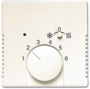 Abb Busch-Jaeger Future bed.element / centr.pl. schakelmat., kunststof, aluminium, uitvoering draaiknop, gebruik thermostaat, uitvoering oppervlakte mat, opdruk/indicatie diverse symbolen, beschermingsgraad (IP) IP20, RAL-nummer 9006, met indicatieveld, halogeenvrij, kwaliteit thermoplast,
