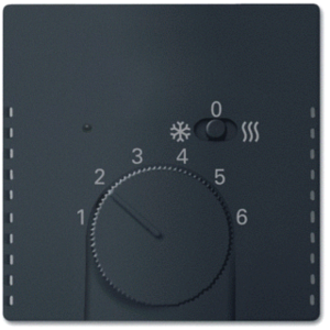 Abb Busch-Jaeger Future bed.element / centr.pl. schakelmat., kunststof, zwart, uitvoering draaiknop, gebruik thermostaat, uitvoering oppervlakte mat, opdruk/indicatie diverse symbolen, beschermingsgraad (IP) IP20, RAL-nummer 9005, met indicatieveld, halogeenvrij, kwaliteit thermoplast,