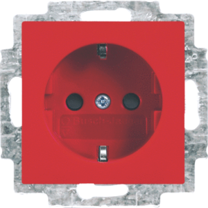 Abb Busch-Jaeger Balance wandcontactdoos (wcd schakelmat.), rood, uitvoering contactdoos CEE 7/3 (type, aardcontact randaarde clips, 2 actieve contacten (rond), 1 eenheid, 1 modules (bij modulair sys, 1 fasen, aansluitwijze steekklem, met verhoogde aanraakbeveiliging, RAL-nummer 3003,