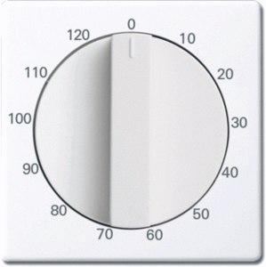 Abb Busch-Jaeger Future, Solo, Axcent, Carat bed.element / centr.pl. schakelmat., kunststof, wit, (bxhxd) 63x63x7mm, uitvoering draaigreep, gebruik tijdschakelaar, uitvoering oppervlakte glanzend, opdruk/indicatie tijdindicatie, beschermingsgraad (IP) IP20, RAL-nummer 9016, halogeenvrij,
