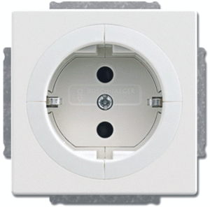 Abb Busch-Jaeger Future wandcontactdoos (wcd schakelmat.), wit, uitvoering contactdoos CEE 7/3 (type, aardcontact randaarde clips, 2 actieve contacten (rond), 1 eenheid, 1 fasen, aansluitwijze steekklem, met verhoogde aanraakbeveiliging, RAL-nummer 9016, uitwerpmechanisme, geïsoleerde montage