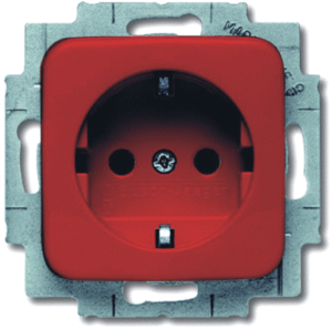 Abb Busch-Jaeger Reflex SI wandcontactdoos (wcd schakelmat.), rood, uitvoering contactdoos CEE 7/3 (type, aardcontact randaarde clips, 2 actieve contacten (rond), 1 eenheid, 1 fasen, aansluitwijze steekklem, met verhoogde aanraakbeveiliging, RAL-nummer 3020, geïsoleerde montage