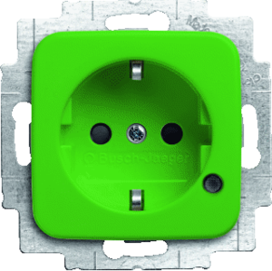 Abb Busch-Jaeger SI wandcontactdoos (wcd schakelmat.), groen, uitvoering contactdoos CEE 7/3 (type, aardcontact randaarde clips, 2 actieve contacten (rond), met signaallamp, 1 eenheid, 1 fasen, aansluitwijze steekklem, met verhoogde aanraakbeveiliging, RAL-nummer 6032, geïsoleerde montage,