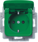 Abb Busch-Jaeger SI wandcontactdoos (wcd schakelmat.), groen, uitvoering contactdoos CEE 7/3 (type, aardcontact randaarde clips, 2 actieve contacten (rond), 1 eenheid, 1 fasen, aansluitwijze steekklem, met klapdeksel, met verhoogde aanraakbeveiliging, RAL-nummer 6032, geïsoleerde montage