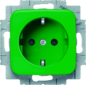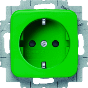 Abb Busch-Jaeger SI wandcontactdoos (wcd schakelmat.), groen, uitvoering contactdoos CEE 7/3 (type, aardcontact randaarde clips, 2 actieve contacten (rond), 1 eenheid, 1 fasen, aansluitwijze steekklem, met verhoogde aanraakbeveiliging, RAL-nummer 6032, geïsoleerde montage