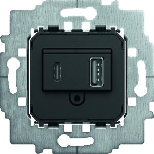 Abb Busch-Jaeger Basiselement voeding usb-voeding overig, antraciet, 1 USB-A-poorten, 1 USB-C poorten, bedrijfsspanning 220 - 230V, max. uitgangsstroom 2.4mA, frequentie 50 - 60Hz, beschermingsgraad (IP) IP20, uitgangsspanning 5 - 12V, aansluitwijze schroefklem, min. diepte van de inbouwdoos 40mm,