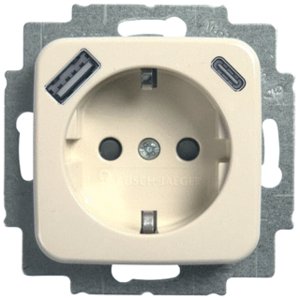 Abb Busch-Jaeger SI wandcontactdoos (wcd schakelmat.), beige, uitvoering contactdoos CEE 7/3 (type, aardcontact randaarde clips, 2 actieve contacten (rond), 1 USB-A-poorten, 1 USB-C poorten, maximale stroomsterkte van USB-voed 2.4A, 1 eenheid, 1 fasen, aansluitwijze steekklem, RAL-nummer 1013,