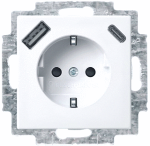 Abb Busch-Jaeger Balance wandcontactdoos (wcd schakelmat.), wit, uitvoering overig, aardcontact randaarde clips, 2 actieve contacten (rond), 1 USB-A-poorten, 1 USB-C poorten, maximale stroomsterkte van USB-voed 2.4A, 1 eenheid, 1 modules (bij modulair sys, 1 fasen, aansluitwijze steekklem,