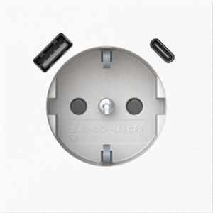 Abb Busch-Jaeger wandcontactdoos (wcd schakelmat.), wit, uitvoering overig, aardcontact randaarde clips, 2 actieve contacten (rond), 1 USB-A-poorten, 1 USB-C poorten, maximale stroomsterkte van USB-voed 2.4A, 1 eenheid, 1 fasen, aansluitwijze steekklem, RAL-nummer 9016, geïsoleerde montage