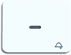 Abb Busch-Jaeger Alpha bed.element / centr.pl. schakelmat., kunststof, wit, (bxhxd) 70x54x7mm, uitvoering enkele wip, gebruik schakelaar/drukker, uitvoering oppervlakte glanzend, opdruk/indicatie symbool"bel", controlevenster/verlicht, beschermingsgraad (IP) IP20, RAL-nummer 9016, halogeenvrij,