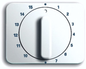 Abb Busch-Jaeger Alpha bed.element / centr.pl. schakelmat., kunststof, wit, (bxhxd) 70x54x7mm, uitvoering draaigreep, gebruik tijdschakelaar, uitvoering oppervlakte glanzend, beschermingsgraad (IP) IP20, RAL-nummer 9016, halogeenvrij, kwaliteit thermoplast, oppervlaktebescherming geen (onbehandeld),