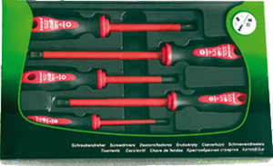 Haupa 1019 schroevendraaier set, 2 kruisschroevendraaiers PH, 4 sleufschroevendraaiers, geïsoleerd, geïsoleerd 1000 V, greepuitvoering 2-componenten
