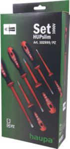 Haupa schroevendraaier set, 2 kruisschroevendraaiers PZ, 4 sleufschroevendraaiers, geïsoleerd, geïsoleerd 1000 V, greepuitvoering 2-componenten, norm EN 60900, totaal aantal gereedschappen 6, verpakking doos