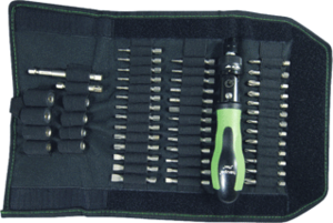 Haupa gereedschapset, 8 dopinzetstukken, 40 bitinzetstukken, totaal aantal gereedschappen 51, 1 ratels