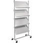 Folderrek the rolling show, Aantal legborden: 4, Kleur: Zilver, Totale breedte: 750 mm, Totale diepte: 39 mm, Totale hoogte: 1580 mm, Montage: Zelfbouw, Gewicht: 16900 g, Geleverd gemonteerd: nee, Voor formaat: 210 x 297 mm (A4)