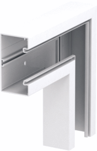Obo verticaal hoekstuk wandgoot, kunststof, wit, (dxb) 70x130mm, oppervlaktebescherming geen (onbehandeld), bodemperforatie, 1 deksels, met beschermfolie, hoek 90°, uitvoering basisdeel, symmetrisch, dekselbreedte 1 80mm, richting stijgend/vallend, kwaliteit polyvinylchloride (PVC), RAL-nummer 9001,
