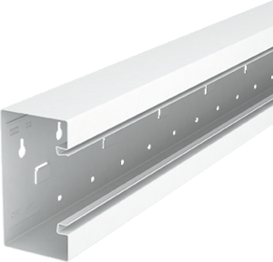 Obo GS wandgoot, staal, wit, breedte 130mm, diepte 70mm, symmetrisch, halogeenvrij, RAL-nummer 9010, bevestiging deksel binnenliggend, dekselbreedte 1 76.5mm, uitvoering achterwand (binnenzijde) met klemnok, kwaliteit overig, geschikt voor aantal deksels 1, oppervlaktebescherming geen (onbehandeld),