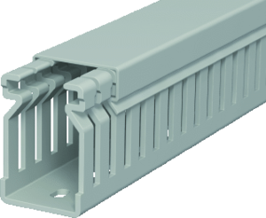 Obo LK4 bedradingskoker, polyvinylchloride (PVC), grijs, breedte 25mm, hoogte 40mm, zijwand uitdrukpoorten, kruipstroomvast, met bovendeel, nuttige doorsnede 867mm², RAL-nummer 7030, sleufafstand 10mm, sleufbreedte 4mm, zelfdovend