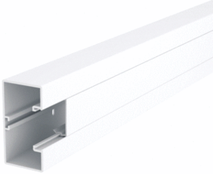 Obo wandgoot, kunststof, wit, breedte 100mm, diepte 53mm, symmetrisch, deksels meegeleverd, RAL-nummer 9010, bevestiging deksel binnenliggend, dekselbreedte 1 45mm, uitvoering achterwand (binnenzijde) doorlopend C-profiel, kwaliteit polyvinylchloride (PVC), geschikt voor aantal deksels 1,
