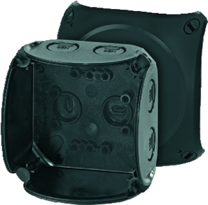 Hensel ENYCASE KF opbouwdoos wand/plafond montagedoos, kunststof, zwart, (lxbxd) 93x93x62mm, vierkant, wand-/plafondmontage, nom. isolatiespanning Ui 1000V, voor buisdiameter overig, type behuizingsdoorvoer uitbreekpoort, 7 invoeren, oppervlaktebescherming geen (onbehandeld),