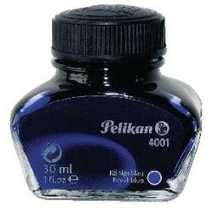 Pelikan vulpeninkt 4001. Glazen potje. Inhoud: 30 ml. Kleur: koningsblauw.