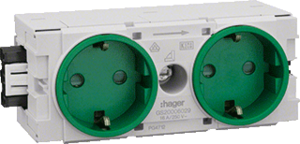 Hager Tehalit Ecoline wandcontactdoos (wcd schakelmat.), groen, uitvoering contactdoos CEE 7/3 (type, 2 eenheden, 2 modules (bij modulair sys, 1 fasen, aansluitwijze steekklem, met verhoogde aanraakbeveiliging, tekstveld/beschrijvingsvlak, RAL-nummer 6029, geïsoleerde montage