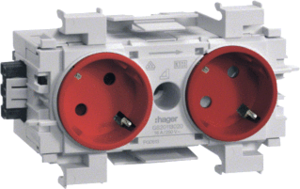 Hager Tehalit Ecoline wandcontactdoos (wcd schakelmat.), rood, uitvoering contactdoos CEE 7/3 (type, 2 eenheden, 2 modules (bij modulair sys, 1 fasen, aansluitwijze steekklem, met verhoogde aanraakbeveiliging, tekstveld/beschrijvingsvlak, RAL-nummer 3020, geïsoleerde montage