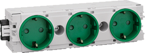 Hager Tehalit Ecoline wandcontactdoos (wcd schakelmat.), groen, uitvoering contactdoos CEE 7/3 (type, 3 eenheden, 3 modules (bij modulair sys, 1 fasen, aansluitwijze steekklem, met verhoogde aanraakbeveiliging, tekstveld/beschrijvingsvlak, RAL-nummer 6029, geïsoleerde montage