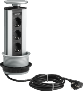Hager Tehalit 2 the Desk wandcontactdoos (wcd schakelmat.), zilver, uitvoering contactdoos CEE 7/3 (type, 3 eenheden, aansluitwijze incl. aansluitsnoer. 2 m, met verhoogde aanraakbeveiliging
