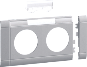 Hager Tehalit Ecoline afdekplaat install.-comp. wandgoot, kunststof, grijs, lengte 152mm, uitvoering glad, kwaliteit overig, oppervlaktebescherming geen (onbehandeld), halogeenvrij, 2 eenheden, apparaattype kanaalcontactdoos 2-voudi, met indicatieveld, zaagsnede-afdekking, breedte deksel 80mm,