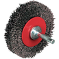 Staalborstel met gegolfd staaldraad, Ø: 80 mm, Model: Rond, Draad materiaal: Gegolfd staal, Max. snelheid: 12000 omw/min, Stang Ø: 6 mm, Gebruik: Afwerken