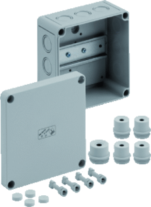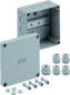 Spelsberg RK opbouwdoos wand/plafond montagedoos, kunststof, grijs, (lxbxd) 130x130x75mm, vierkant, universeel, max. aderdoorsnede 4mm², nom. isolatiespanning Ui 400V, type behuizingsdoorvoer dichtmembraan, 12 invoeren, oppervlaktebescherming geen (onbehandeld), dekselbevestiging geschroefd,